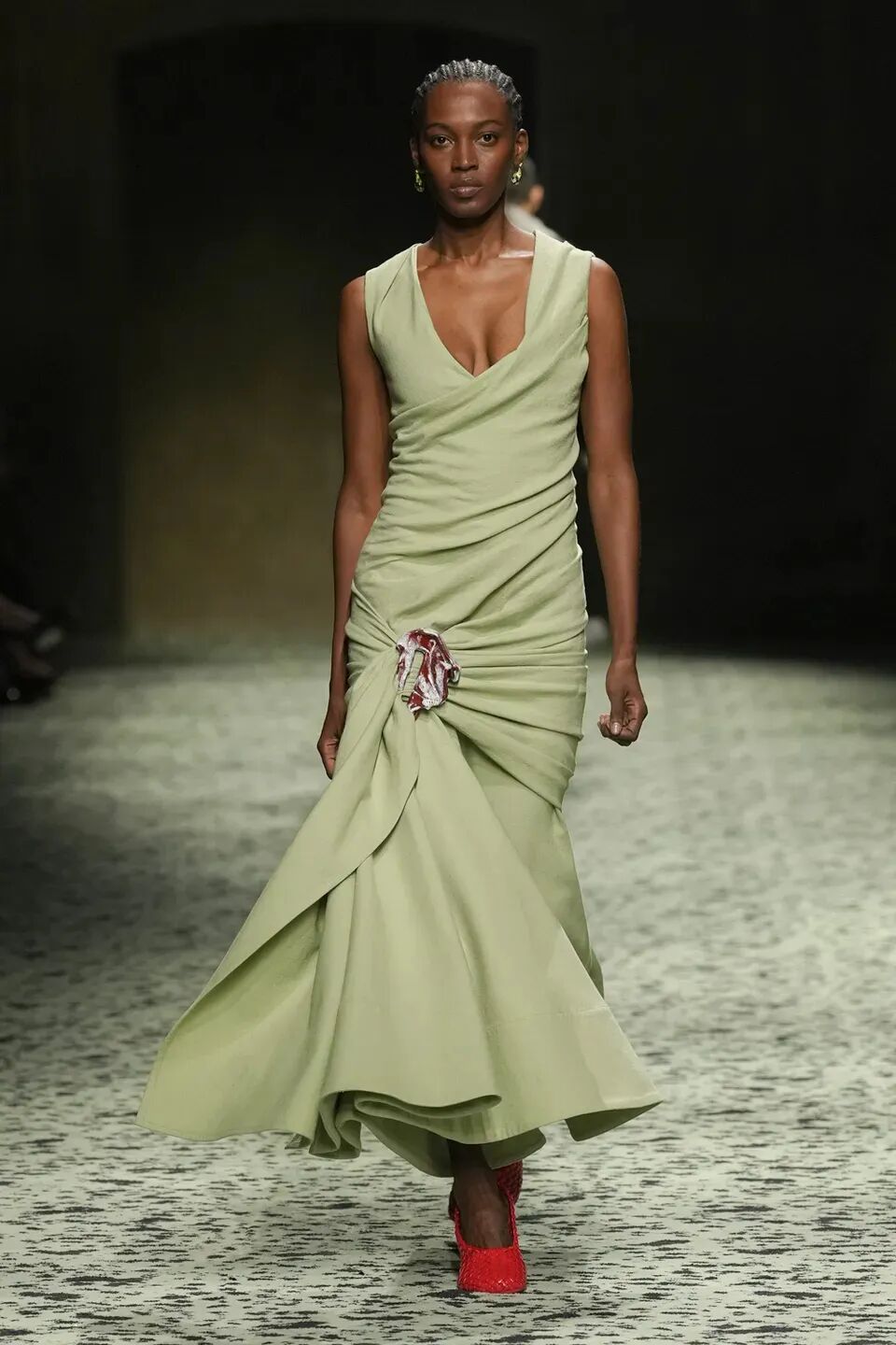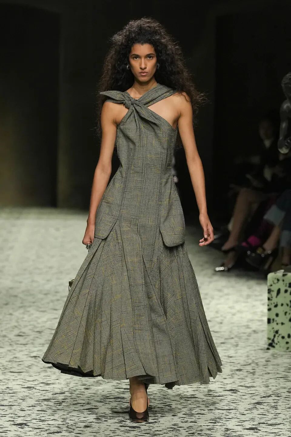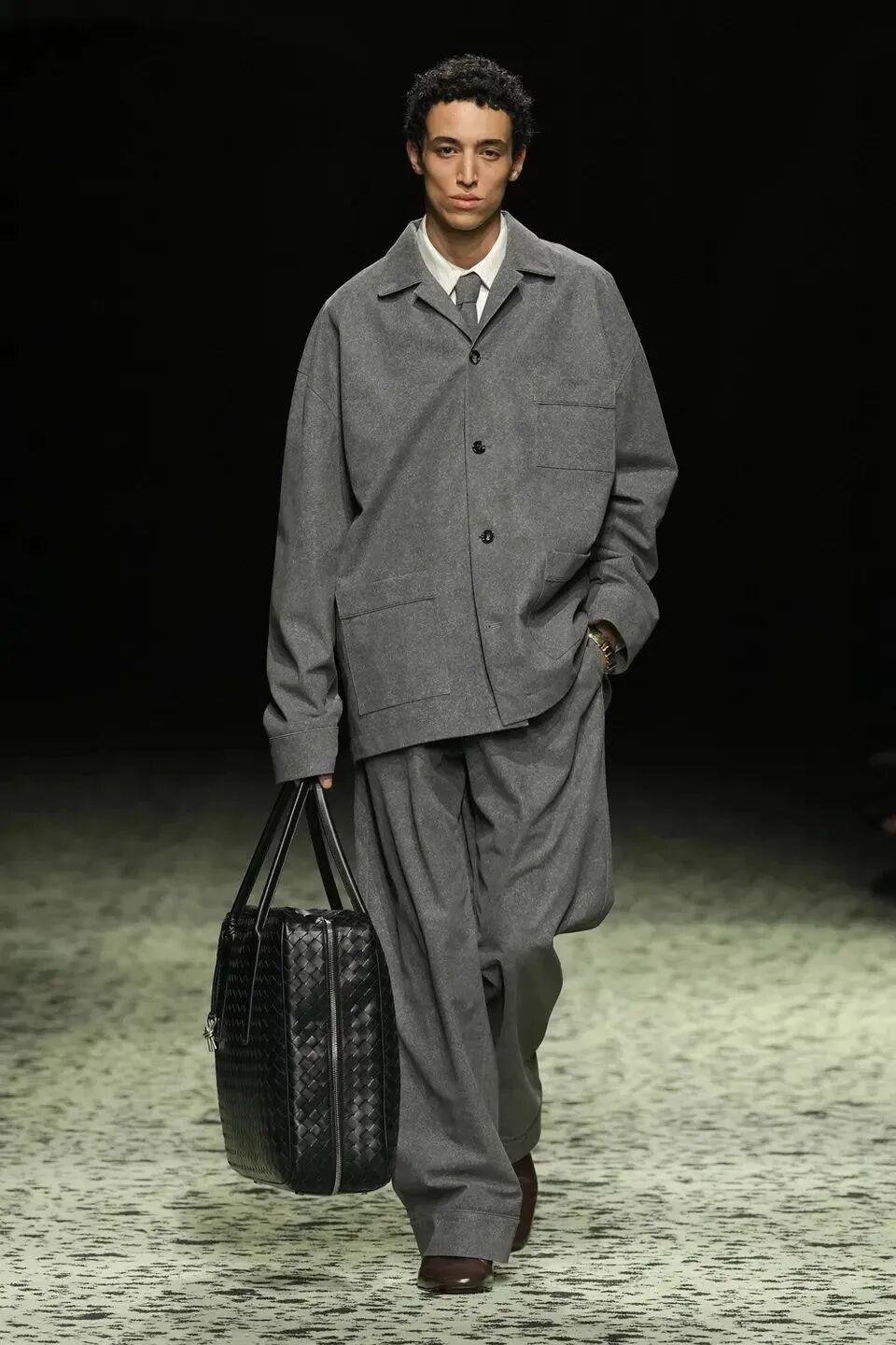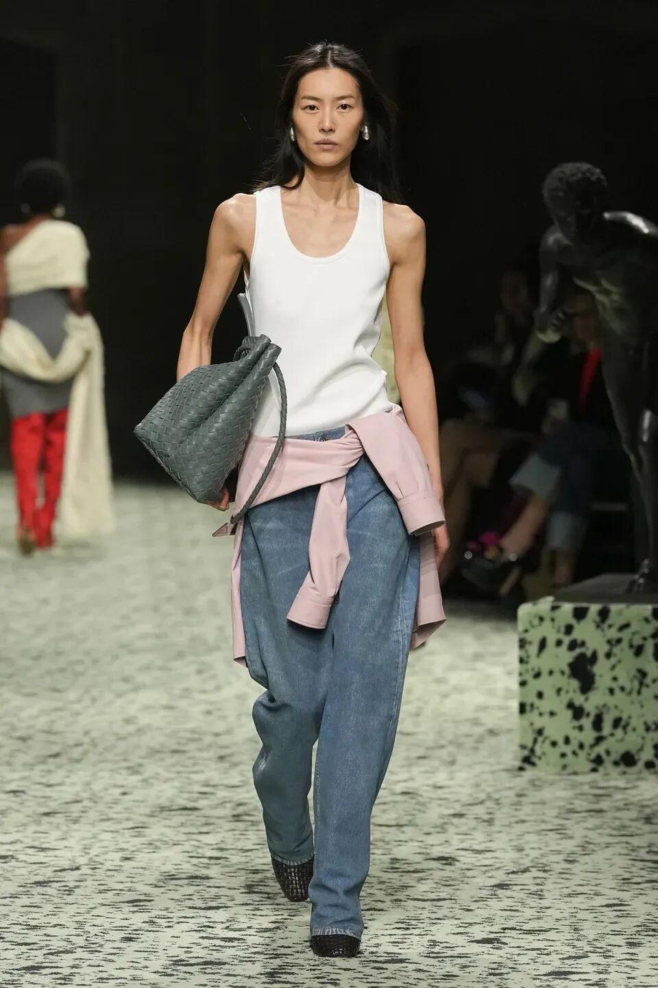 舒服的淡綠色地毯在秀場排開,裡面裝飾著古羅馬的青銅跑者,無不向精細考究的意大利手工藝致敬。