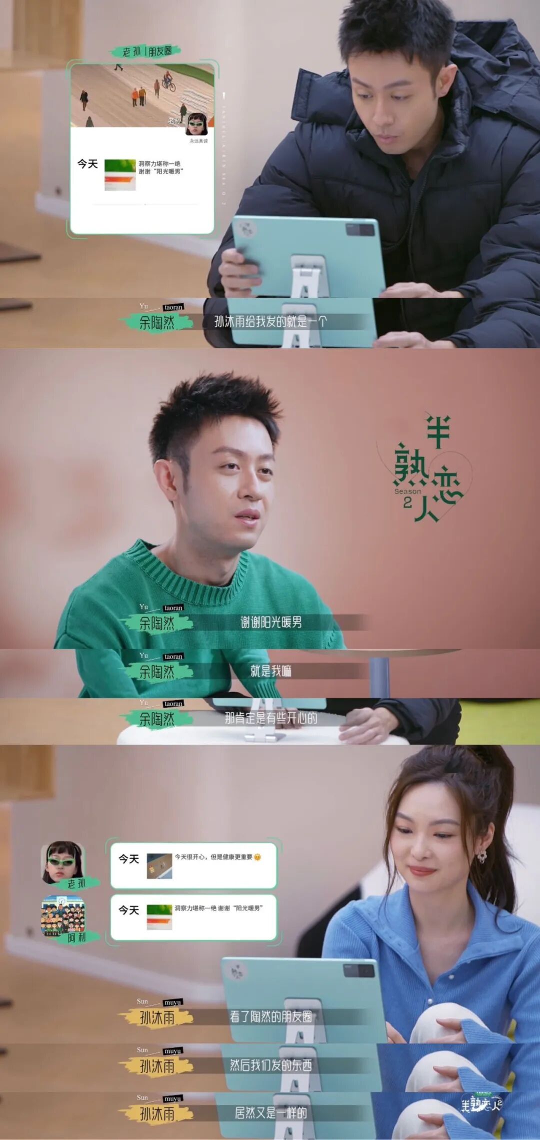 她提起節目裡的男嘉賓餘陶然,老餘在節目組和許多觀眾眼裡儼然是一個話不多、成熟穩重的30+男子。但隨著瞭解加深,很多人又發現他是一個憨憨的、有著自己獨特冷幽默的北京男人。如果用“標籤式找人”的話,或許就會錯過這樣一位有意思的男嘉賓。
