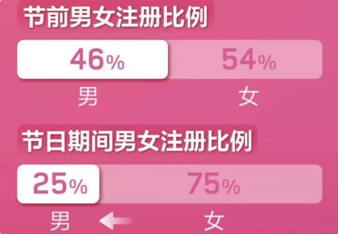以“相親市場男女比例”為關鍵詞進行搜索,會發現強調“女多男少”、“男一女九”的文章比比皆是。去年,某相親類APP曾披露過這樣一組數據,該平臺註冊用戶的男女比例在2021年春節前為46%:54%,經過一個春節,比例再一步被拉大,為25%:75%,女性註冊人數迎來激增。