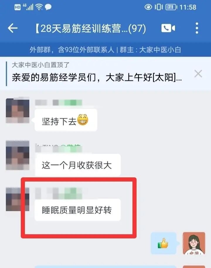 到目前為止,28式易筋經已經開辦六期了,有諸多學員通過練習改善了睡眠問題。一起來看看其中幾位學員的練習反饋: