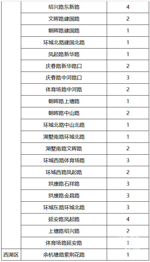 105個路口分佈在上城區、拱墅區、西湖區。其他區縣(市)則根據屬地情況自行實施安裝。