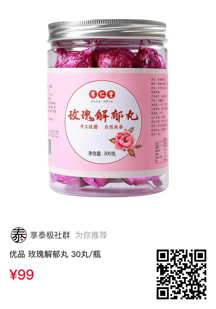 有仁堂玫瑰解鬱丸 300克(30丸)/瓶