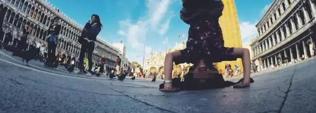 每到一個地方,倒立留念。