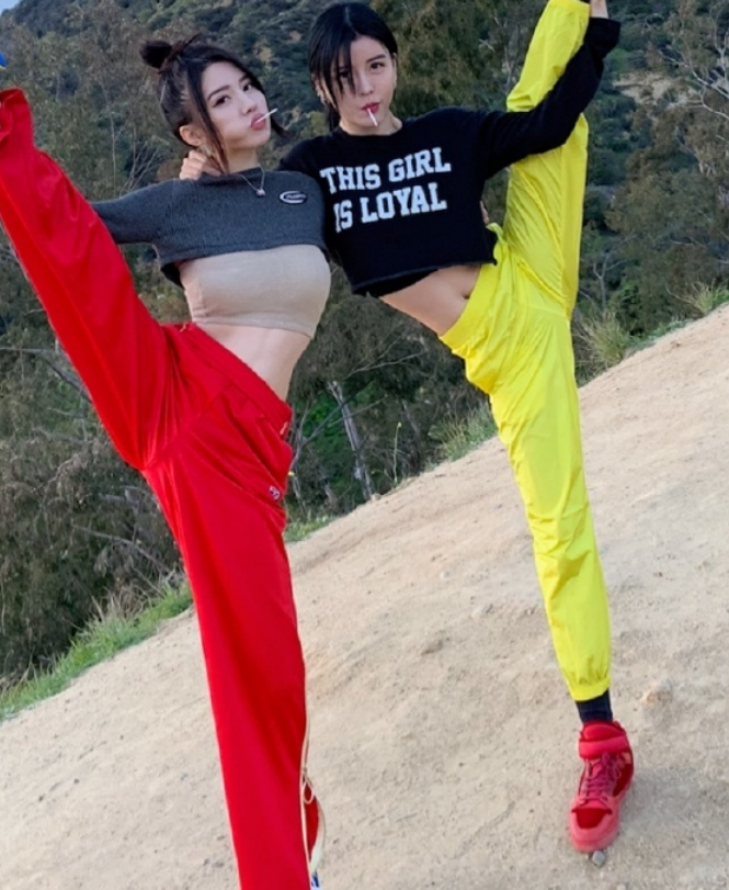她們的身材簡直是太好了吧,兩人都是穿了一身的運動裝,修身的款式很好的凸顯了她們的身材,左邊的妹妹穿了紅色的運動褲,而右邊的姐姐則是穿了黃色的,撞色的搭配看起來十分的吸睛。