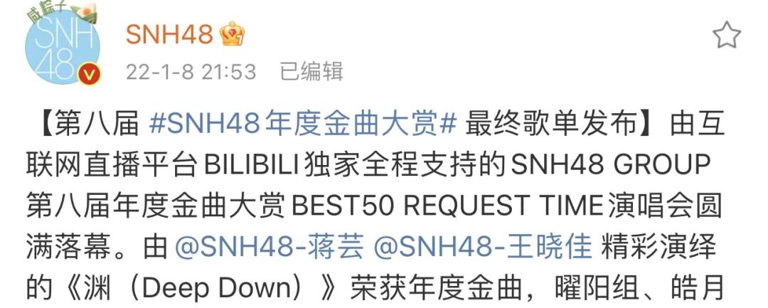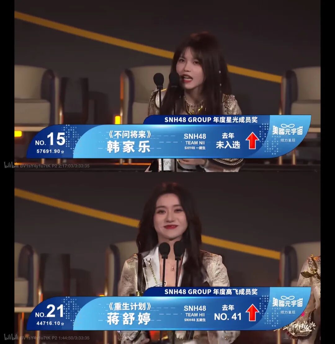 也是cp版本的受益人,她偶像生涯的轉折點大概就是和蔣芸參加了“最佳拍檔”,(▼“最佳拍檔”就是一個雙人合作舞臺的企劃)倆人通過“最佳拍檔”成為去年金曲的第一名,(粉絲投出160w+)對於已經到了合約年齡不用再總選的王曉佳來說,更直接的飛昇體現在了口袋48的雞腿榜上,(口袋48類似於韓娛bubble,雞腿為口袋48流通貨幣,成員可以通過雞腿獲得提成)從21年組cp以來穩居雞腿榜前三,而在團9年最高只獲得過21名的蔣芸,在畢業後也靠著cp粉的排面,直播做得有聲有色,還接到了音樂劇,粉絲粘度遠高於同期畢業的河人。同樣靠“最佳拍檔”這個企劃起飛的還有蔣舒婷X韓家樂,▼儘管倆人帶來的舞臺是這個水平的,但靠著粉絲買單的cp人設和日常故事線,去年總選一個上升20名,一個直接飛昇至top16,可以見得,這個“最佳拍檔”就是當下塞納河最大的東風,於是在今年辦到第三屆,出現了全團現役172人,148個人參加的盛況…明明是一個搭夥搞舞臺的企劃,那像這種穿越人海去接你、(cr.西柚火鍋)悄咪咪送禮物、深夜的奔赴…提問:你們是要合作舞臺啊還是要拍戀綜啊?成員對“最佳拍檔”新一季啟動的態度也是很直白,在賣(cp)了,在賣(cp)了…不卷舞臺卷cp,似乎已經成了這條河不用明說的規則,畢竟看了上面那些飛昇實例…賣cp的收益真的很讓人心動,(cp賣好了能起飛,萬一be了還有概率能提純cp粉飛得更高!比如黑喵兩人的名次都是在be之後才突飛猛進的)不光48的成員深諳賣cp之道,絲芭決策層也嚐到了cp模式的甜頭,儘管近幾年經濟不算景氣,但cp版本下的塞納河總選票數依然能年年走高,甚至在金曲上還官宣了要新開成都分團…只能說確實很有的賺哈…至於48系出名的戀愛禁止條例,在cp模式下也變得不那麼重要了,▼從48退團的睡睡和醒醒,甚至都被抓回48…你別說…回去以後直播效果也好的嚇人…只能說這個cp市場屬實是被48拿捏了…雖然這種cp大於一切的生態聽起來有些許病態,但從當下的收益反饋上來說,河粉是真的很吃這一套…那對這條河就只有…尊重祝福。最後一句橘的cp什麼時候能再同臺一次😭 2023年 HAVE A GOOD TIME