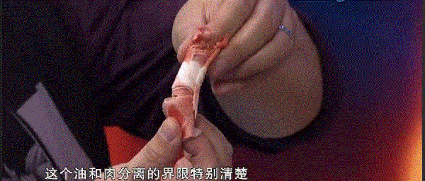 好在,它們的辨別方法很簡單,容易散、紋路少、軟黏、脂肪和精肉之間界限分明就是合成肉卷。
