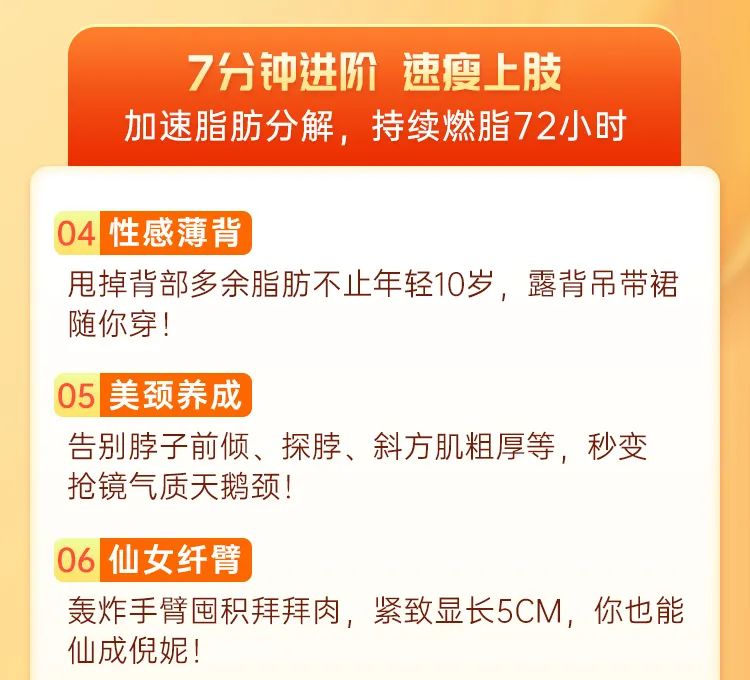 減脂:激活全身肌群促進血液循環,刺激脂肪酶活性,加速脂肪全面代謝,拉長線條瘦出S曲線;