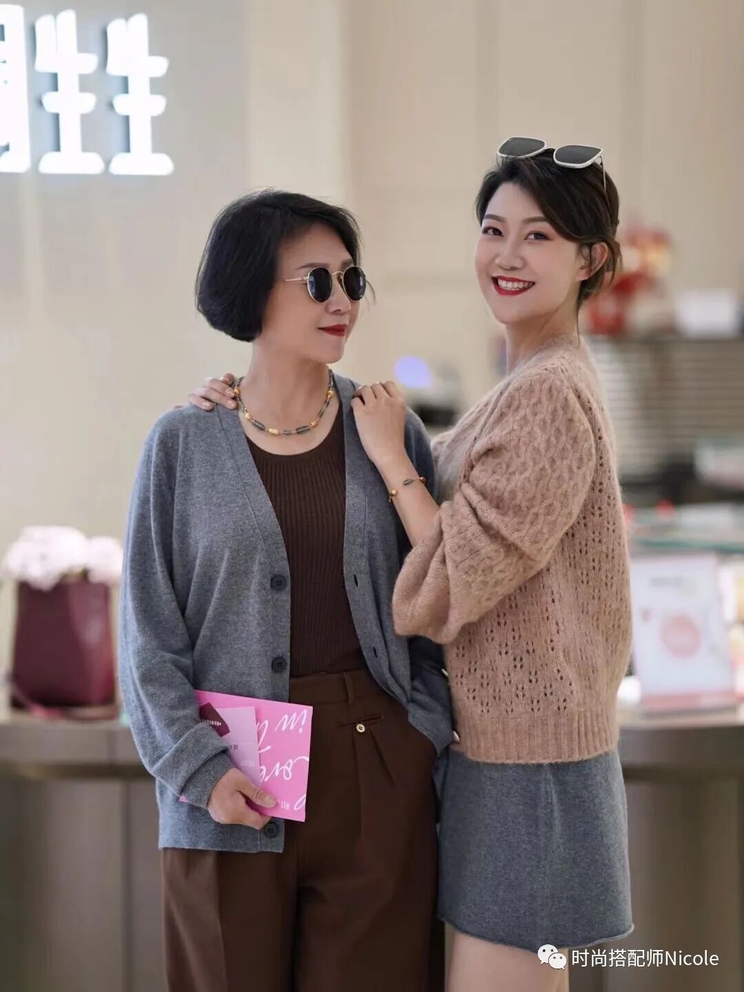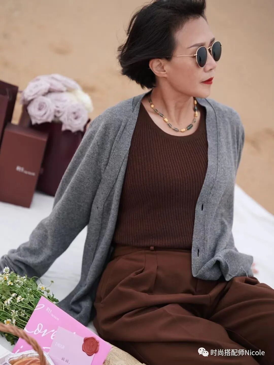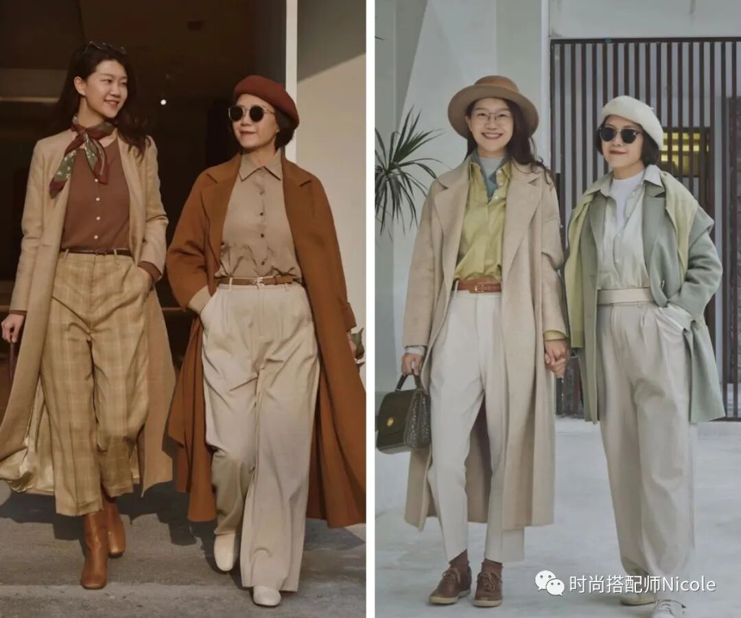顏色是媽媽們翻車最常見的部分,或者是怕顯老選擇很多的花裡胡哨的顏色,或者是怕不夠莊重選擇一堆的黑灰暗沉色,但是對於媽媽們來說,大地色系、莫蘭迪色系、低飽和度色彩才是最佳選擇。