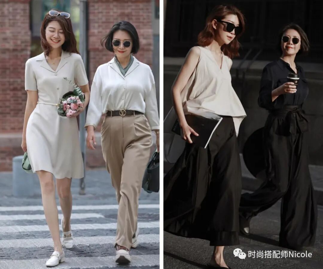 會穿搭的人首先肯定是會塑造麴線感的,就像是下面這個媽媽,身材和大多數媽媽差不多,但是她看起來就是高級,根本就在於會利用鬆緊結合修飾身材,揚長避短。