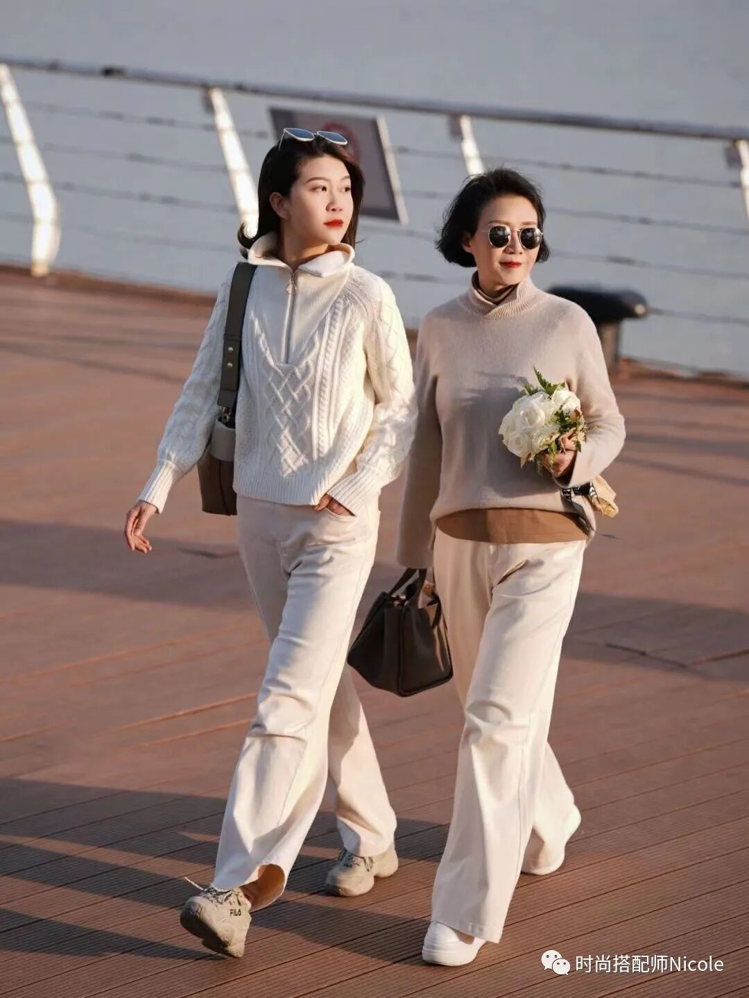 淺色闊腿褲和其他顏色完全不同,無論是搭配深色的上衣,還是去搭配亮色系的上衣,都不會造成厚重感。而且更能塑造輕盈溫柔風,很適合走優雅氣質路線的媽媽們,放在下半身還能提升輕盈感。