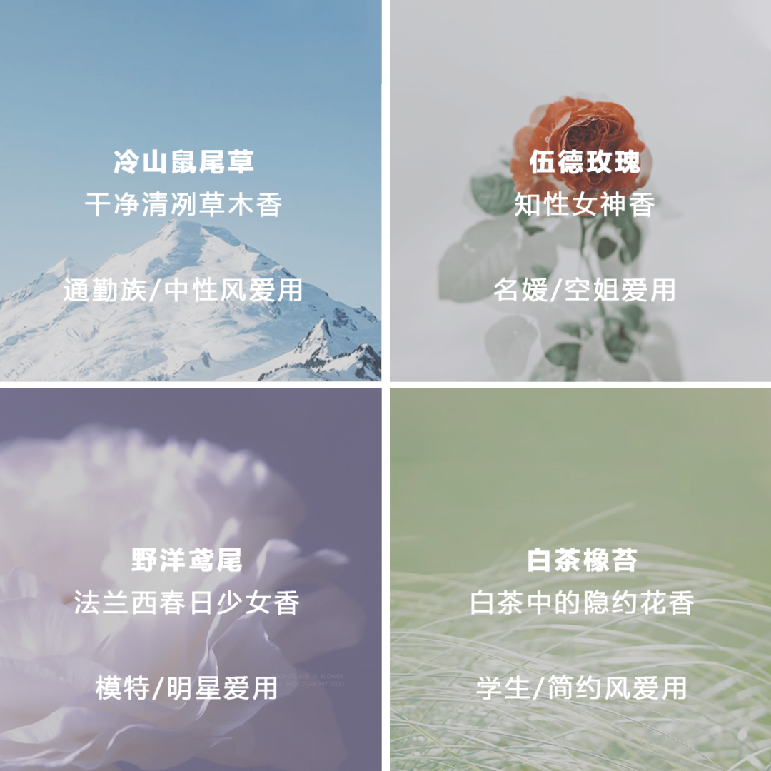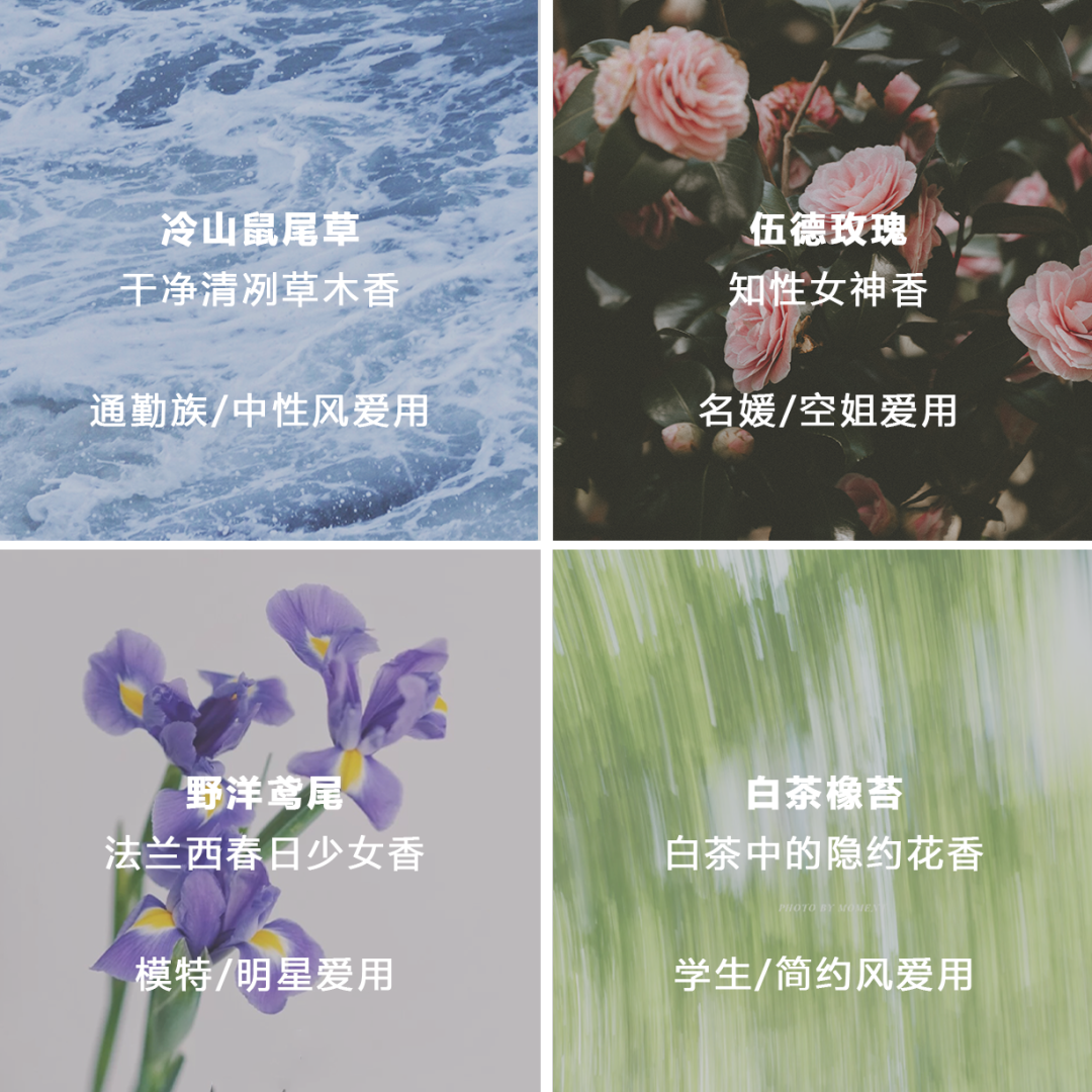 上面2款是官方人氣款,另外2款香型「野洋鳶尾」「白茶橡苔」則是“民間黑馬”。