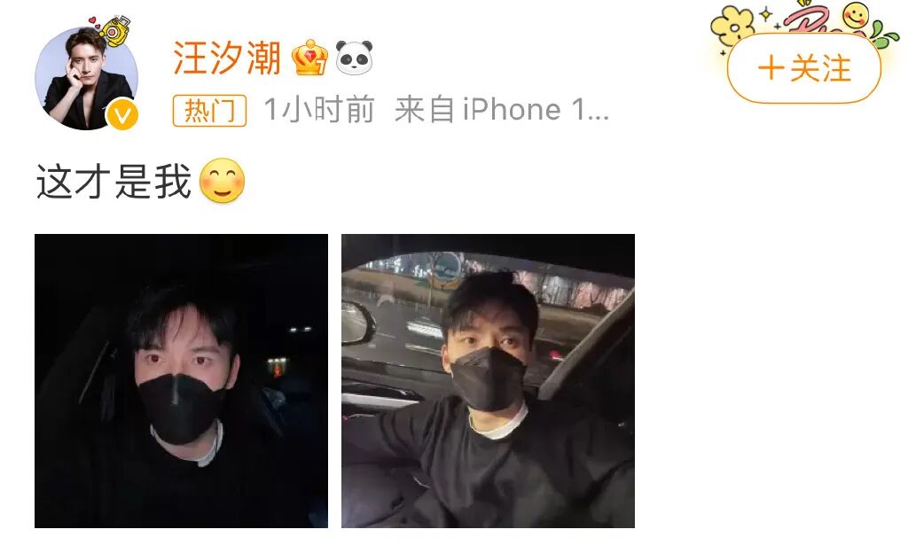 汪汐潮則發了兩張自己的照片,配文:這才是我。