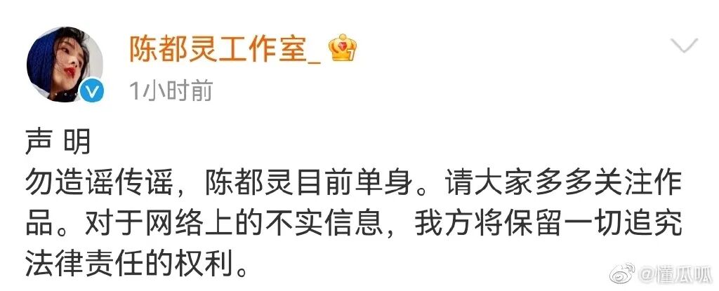 陳都靈工作室直接否認了戀情,說她現在是單身。