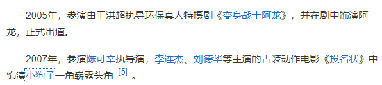 05年出道,07年就在電影《投名狀》裡面演小配角了。