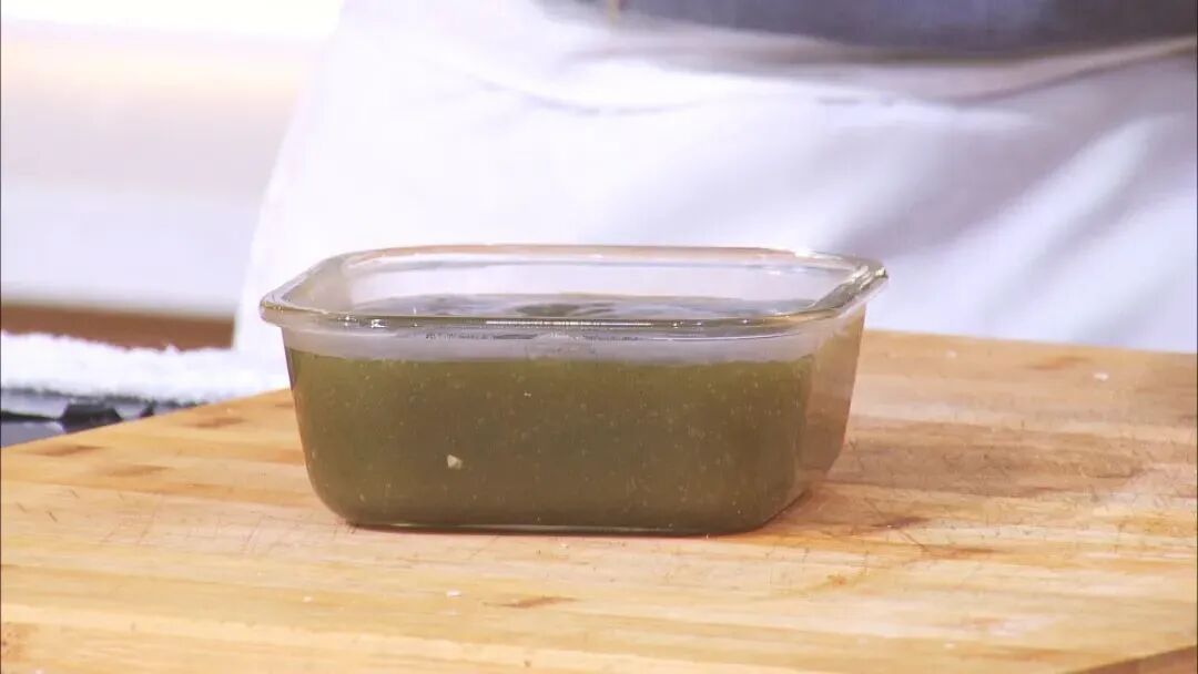 2份血皮菜打成汁,放入鍋中,再加入1份蕎麥漿汁,小火熬煮至黏稠冒泡,出鍋放涼5~6小時後切塊備用。