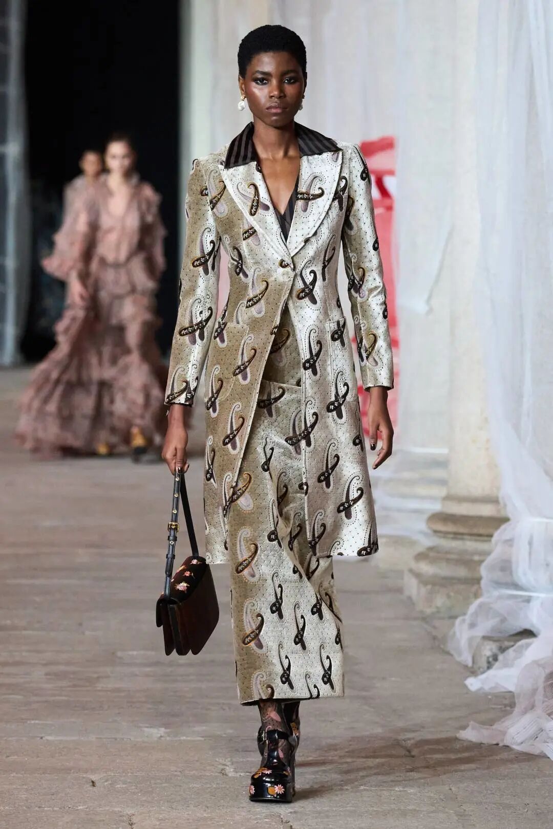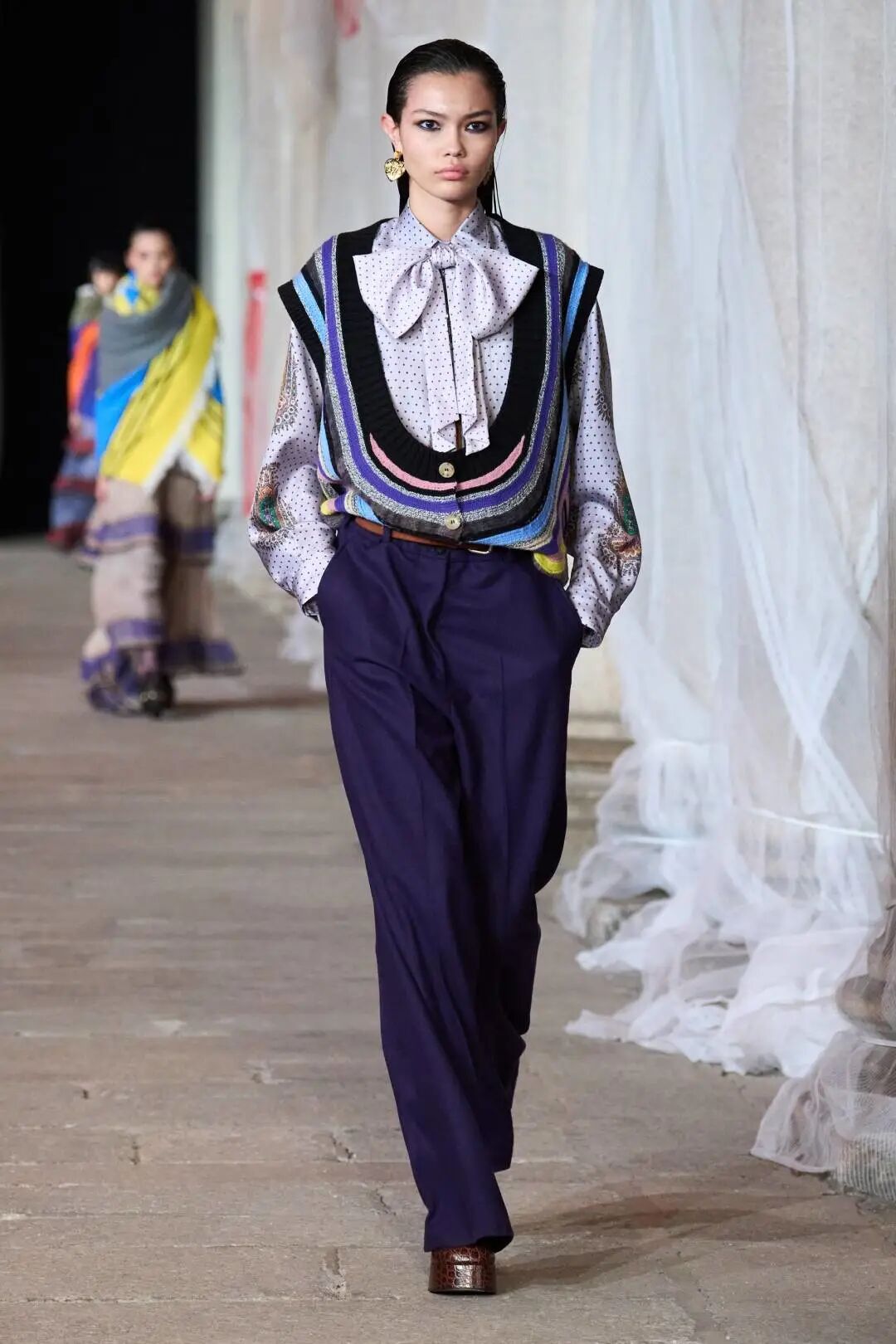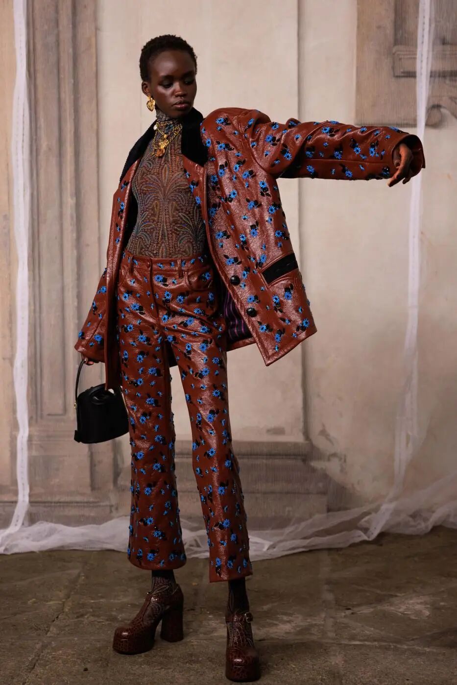 這是一場革新之旅。這個品牌經典的蘇格蘭格紋、Cravatteria 復古印花和佩斯里花紋重回眼前,以 Marco 擅長的光譜式配色混合。他西西里人的熱鬧張揚與 Etro 米蘭式的華麗細節碰撞,呈現出 21 世紀新遊牧風格。