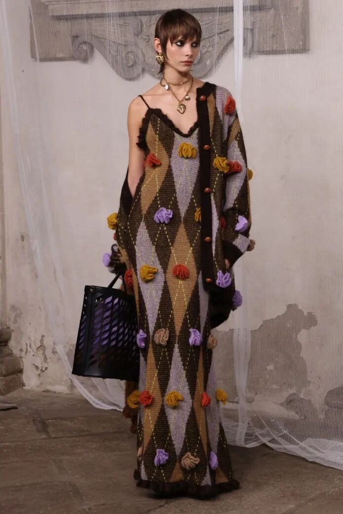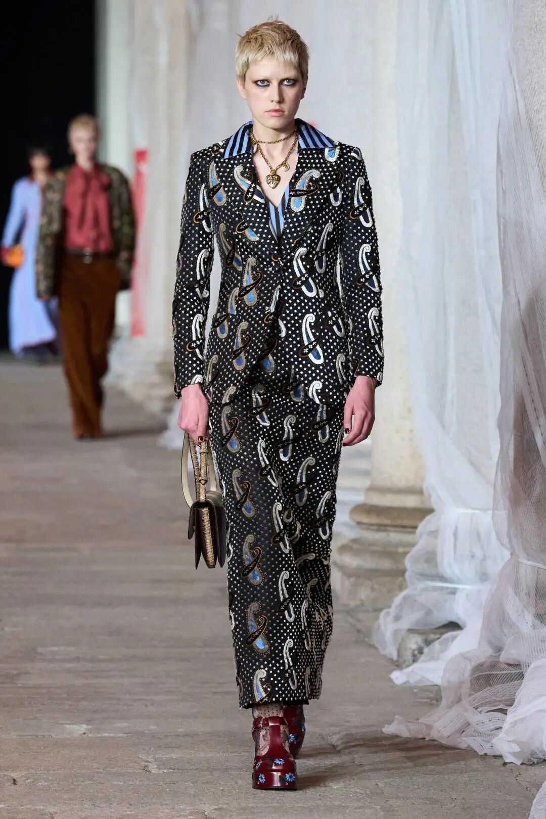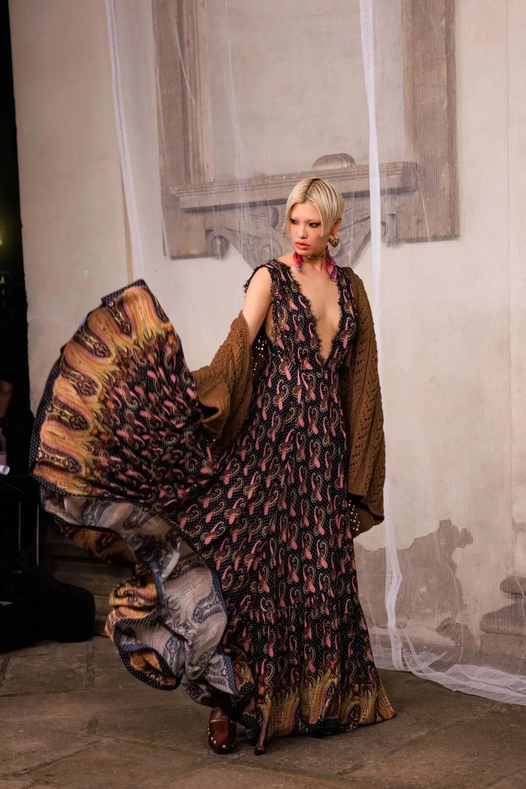 這是一場革新之旅。這個品牌經典的蘇格蘭格紋、Cravatteria 復古印花和佩斯里花紋重回眼前,以 Marco 擅長的光譜式配色混合。他西西里人的熱鬧張揚與 Etro 米蘭式的華麗細節碰撞,呈現出 21 世紀新遊牧風格。