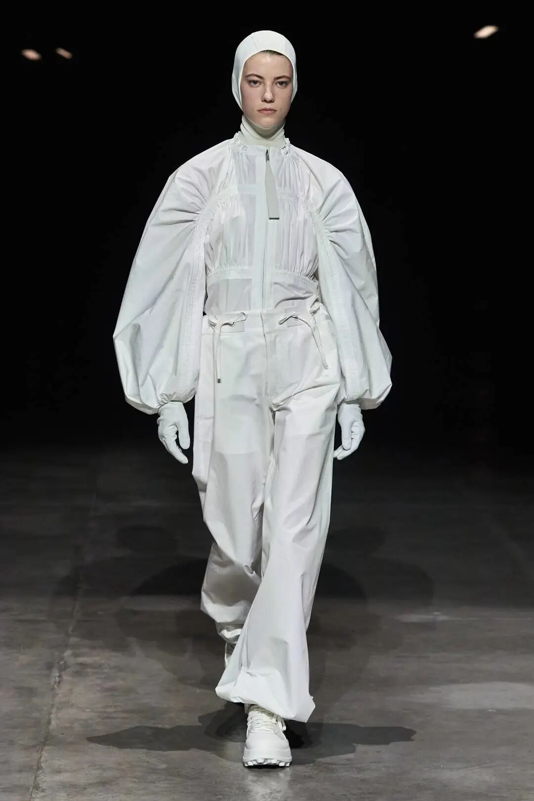 這對夫婦把自己 Y2K 的記憶注入了進去,就如用 Björk 的“All Neon Like”作為秀場音樂,為這個冷靜的品牌增添了一份潮流氣息:酸性色彩、搶眼的糖果印花和 OAMC 式的機能元素,配上巴拉克拉法帽,米蘭總需要一些新風格的貴婦。