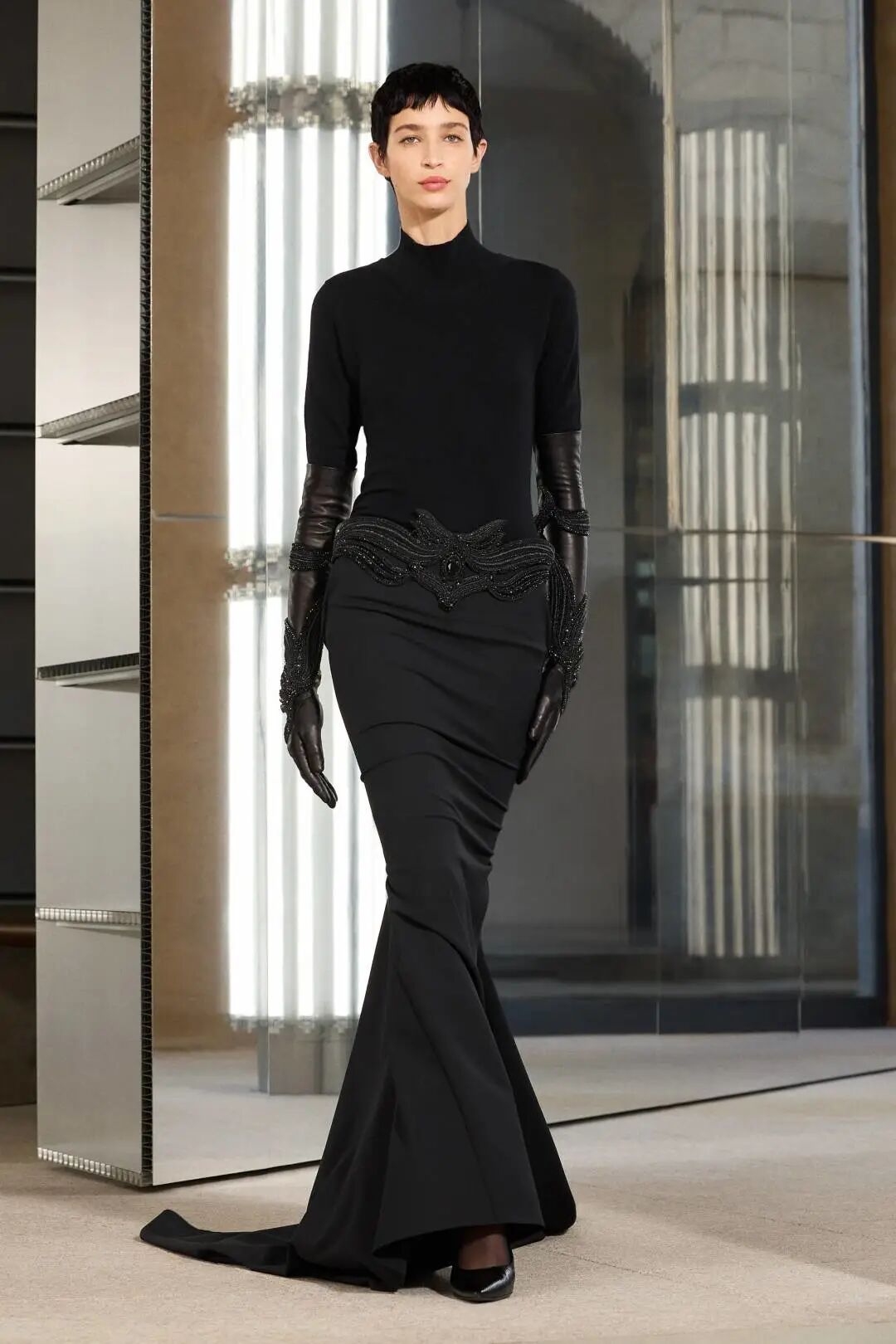 開衩,露背,如肌膚一樣的長靴裹住整條腿,鋼針一樣的高跟鞋插向地面……但他的調色盤非常經典,黑色、紅色、白色、駝色,使得這些性感的衣服也可以穿入日常。