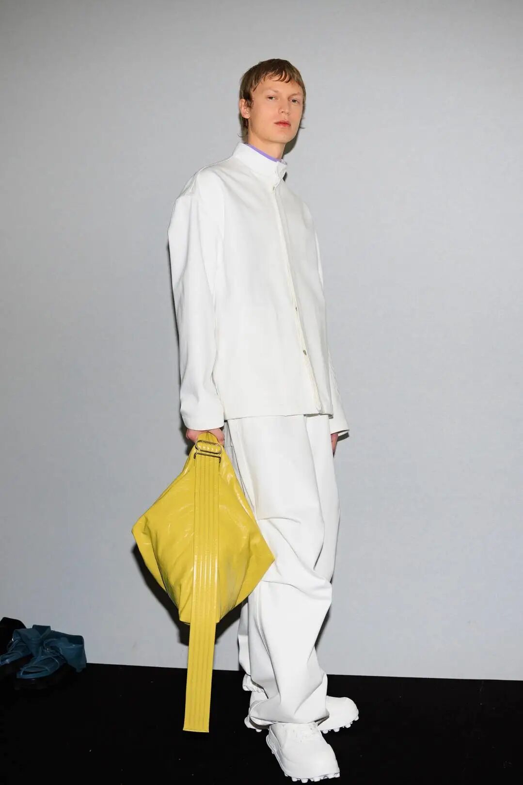 他將人們最熟悉的日常推向了“不確定中”:看起來像針織襪靴的皮靴,宛如襯衫、背心、牛仔褲、雨衣的皮衣,像土耳其長袍一樣的男士針織衫,還有看起來像正裝的針織衫……在 他的 Bottega Veneta 中,你無法用肉眼來辨認一件服飾的材質。唯有穿著它,感受它。