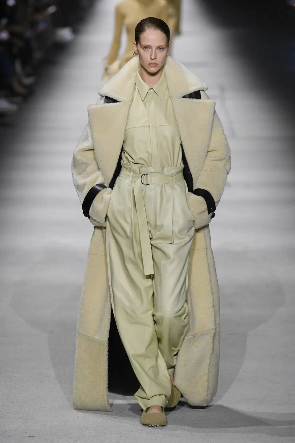 根據創意總監 Matthieu Blazy 打造的前面兩季 Bottega Veneta 作品,我們可以推斷:這身服飾都是皮革製品。