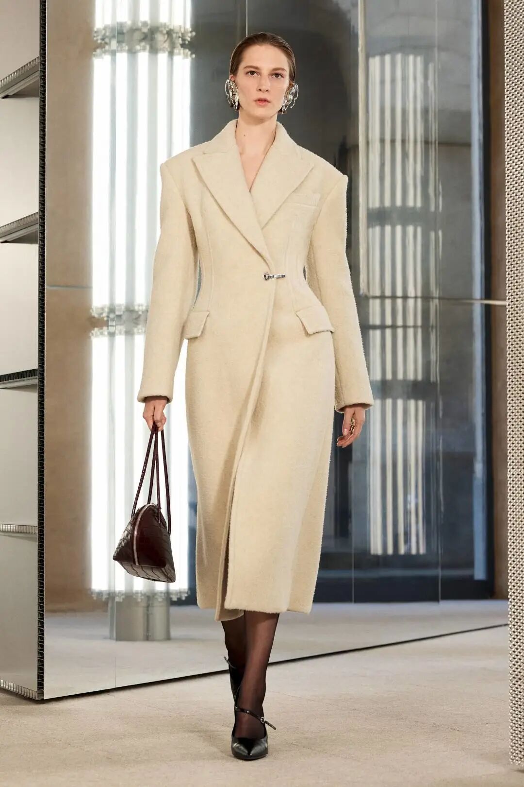 Max Mara 從這些衣著考究的人物中採擷靈感:身穿柔軟外套、侃侃而談的紳士,衣著整潔、頭系黑色緞帶的公證員,肩披斗篷或以單肩披掛大衣的文雅軍官,或是穿著時髦大斗篷的傲慢公爵。於理性與秩序的嚴密剪裁結構設計中融入一絲浪漫的氣息。
