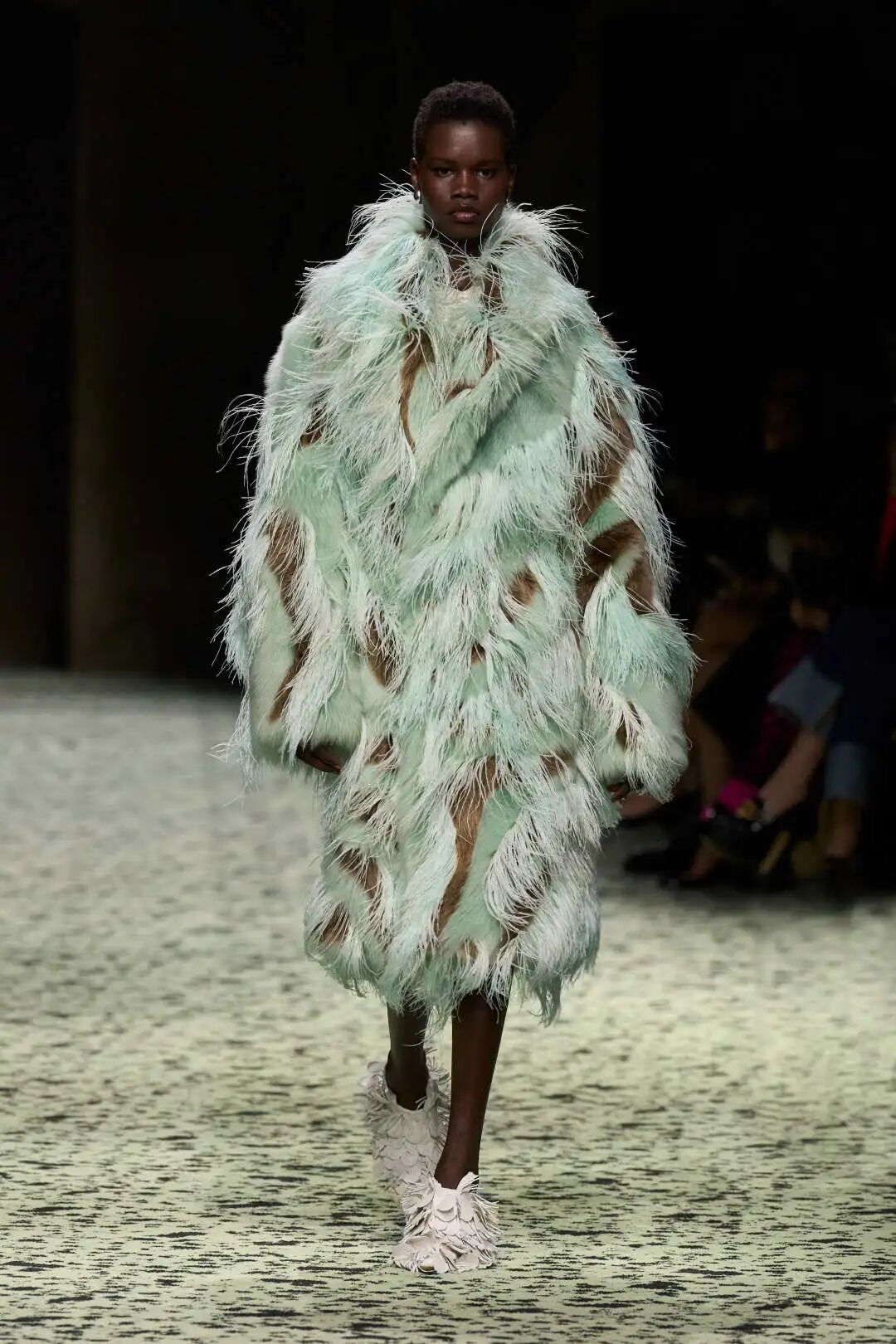 這種手法就像生物學中的“擬態”。他也在這場秀中真的用針織和人造皮草打造了一些看起來像某種海洋軟體動物的服裝,就像是對該系列的“隱喻”。