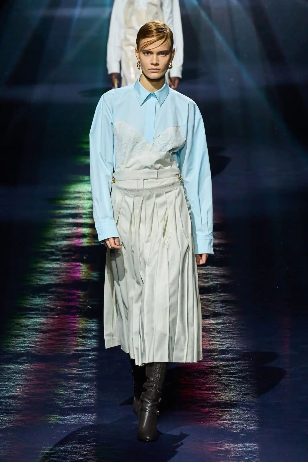 Kim Jones 以 “FENDI 家族第四代代表“ Delfina Delettrez Fendi 的著裝造型為靈感,在這一季探索古典主義與優雅格調。
