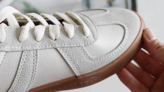 5.鞋頭很好的修飾腳型,在“M”字型基礎上,特別做了防撞設計,一方面讓風格更休閒,另一方面保護腳趾免受傷害,踢撞也不用擔心鞋頭變形。
