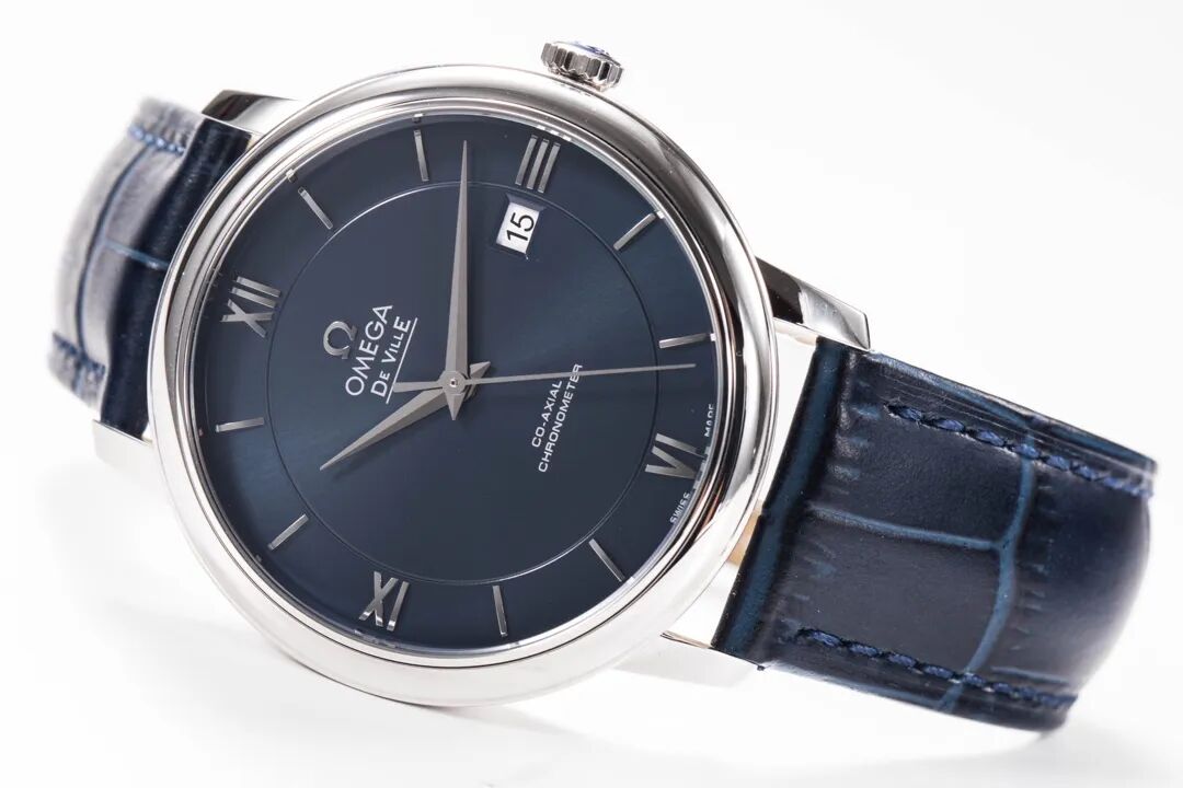 碟飛系列424.10.40.20.03.001腕錶碟飛的這款腕錶,很符合現代審美風格。39.5毫米精鋼錶盤上,經典的海藍色錶盤,簡約、大方。四個羅馬數字,彰顯古典、優雅風範。劍型指針,三刻度的日期顯示和錶盤很好的融為一體。錶盤上的陳設戛然而止,留給人較大的欣賞空間。簡約風格十足的腕錶,搭配舒適的鱷魚皮錶帶,精緻、典雅。