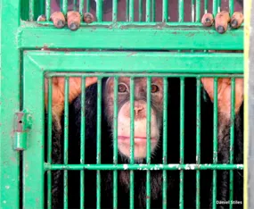 更可怕的是,就“為了”能在人類的社交媒體上露齒一笑,這些小猩猩被迫與它們的母親分離,被毆打至服從命令,被圈養在骯髒狹窄的環境中。