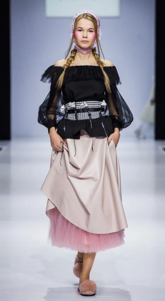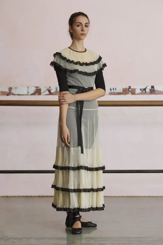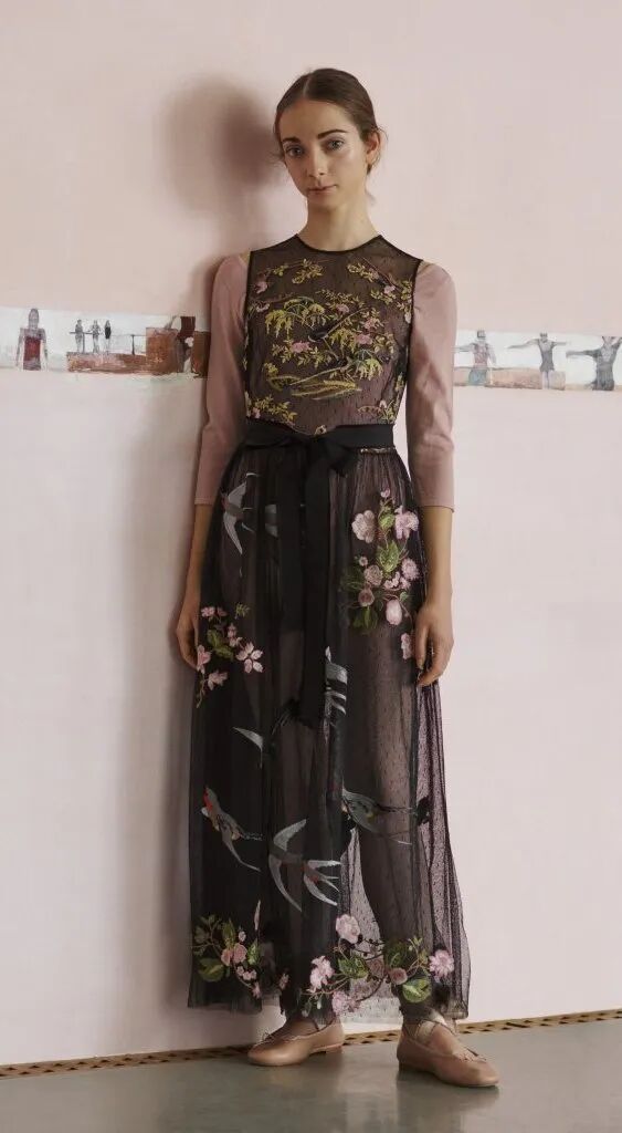 設計師將芭蕾舞裙的設計元素用於打造大衣和裙裝,並加入背心裙等運動風廓形,再融合薄紗、花邊等經典少女風格的元素,使服裝變得不再那麼正式,多了幾分活潑和靈動。