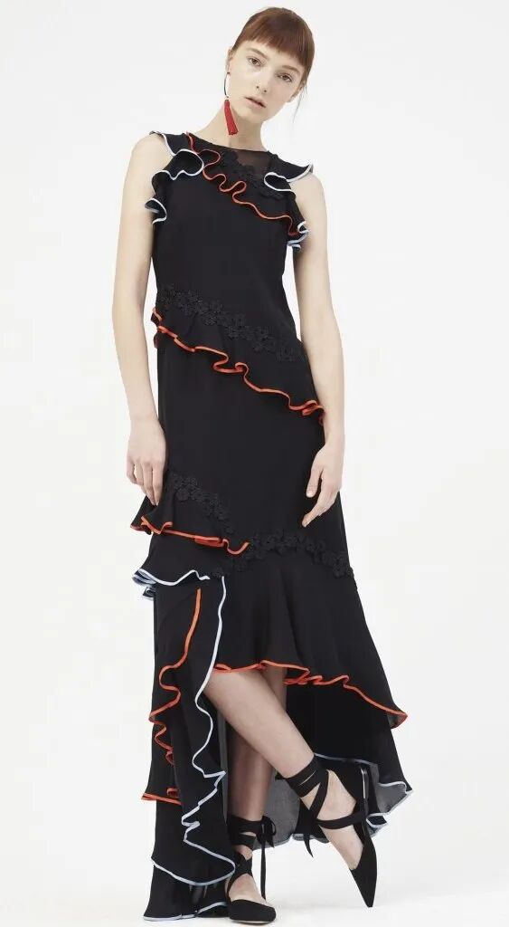 芭蕾風也可以融入傳統中國風元素,流蘇以耳環的方式出現在整體造型裡,搭配上西式的芭蕾舞鞋,別緻又優雅。層層疊疊的裙子上繡著金盞花、珊瑚……這些花卉甚至還出現在了脖頸配飾上。