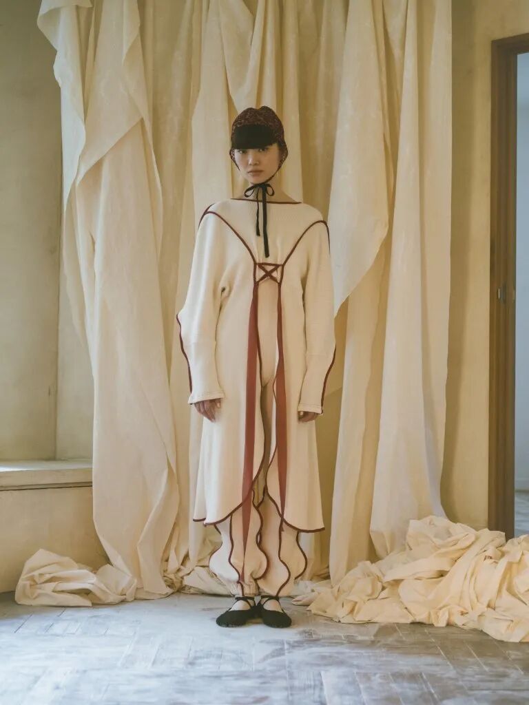 以淺藍色、奶油色為主的柔和色彩作為基本色調,設計師刻意減少使用繃帶設計,改為融入大量繫帶和花邊,同時增加大量獨特色彩褶襉拼接,釋放出動感的張力。