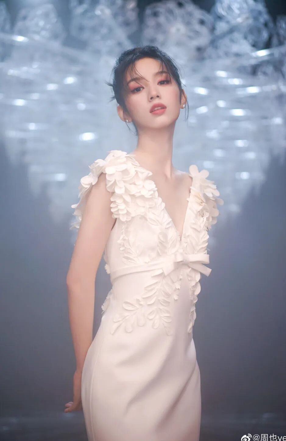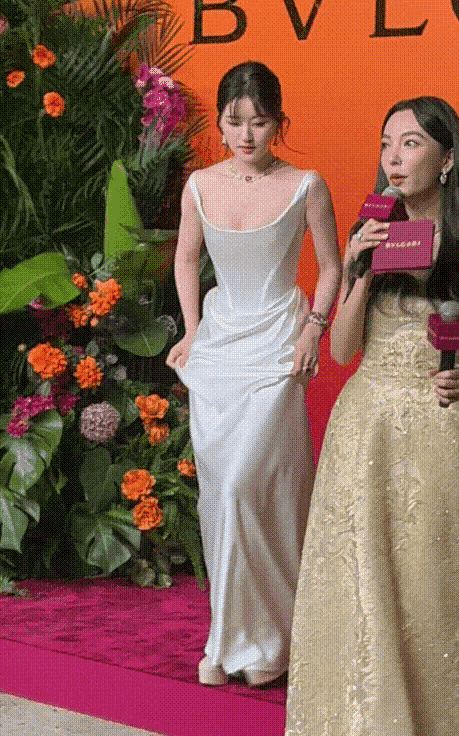 趙露思算是內娛撞禮服比較多的。和完全不同類型的lisa撞了同款vivienne白裙。