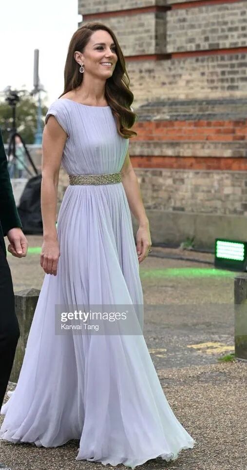 12年出席洛杉磯BAFTF活動選擇的淡紫色連衣裙,10年後在倫敦Earthshot頒獎典禮繼續穿,這次是用了不同的腰帶。