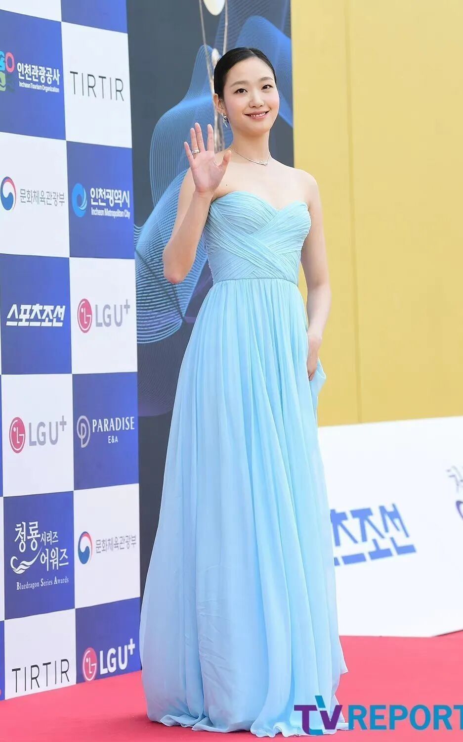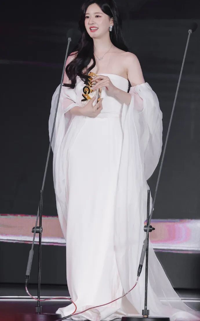 後面走紅毯,她把腰帶卸下又當新禮服穿。