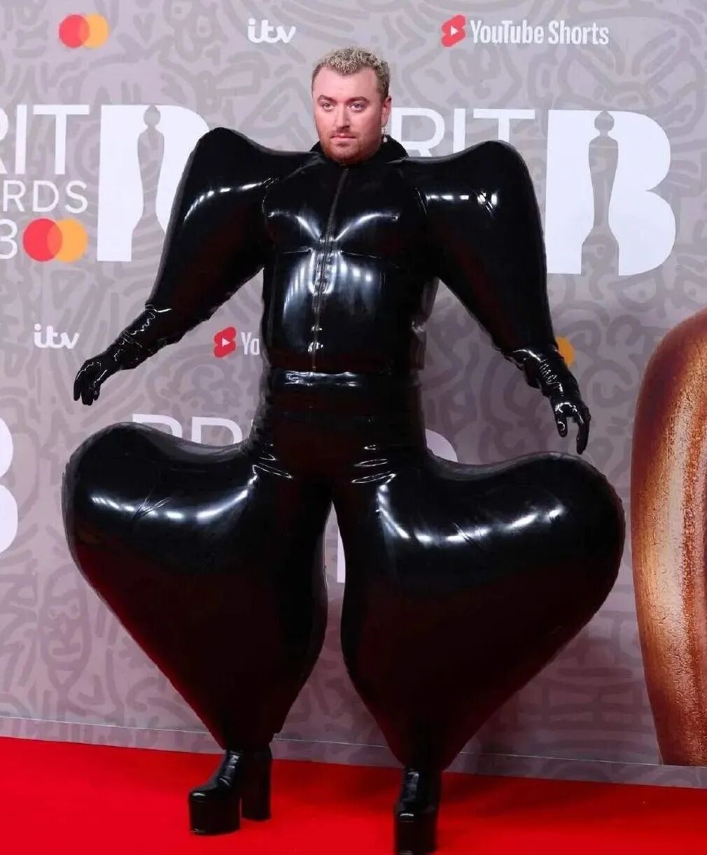 再看騷姆一夜火遍全網的乳膠氣球裝👇
