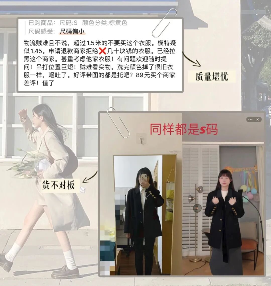 但褪去了濾鏡自己穿上就顯得平平無奇,和模特圖區別太大就導致心理落差變大,所以看實物是哪哪都不對勁。