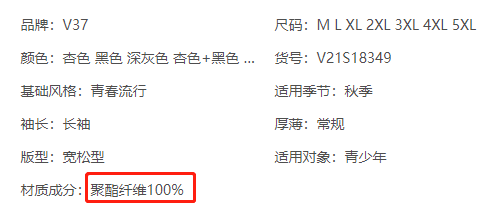 100%聚酯纖維比較悶不透氣,而且容易產生靜電。如果有的衣服內裡和外料都用聚酯纖維的話那就說明成本很低,沒必要花大價錢去買。