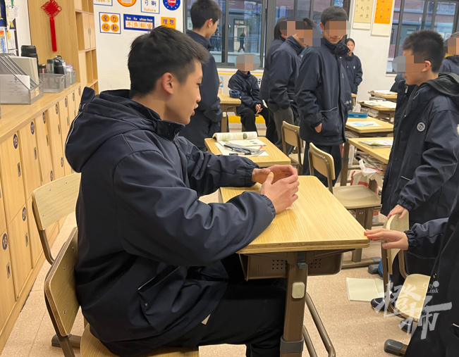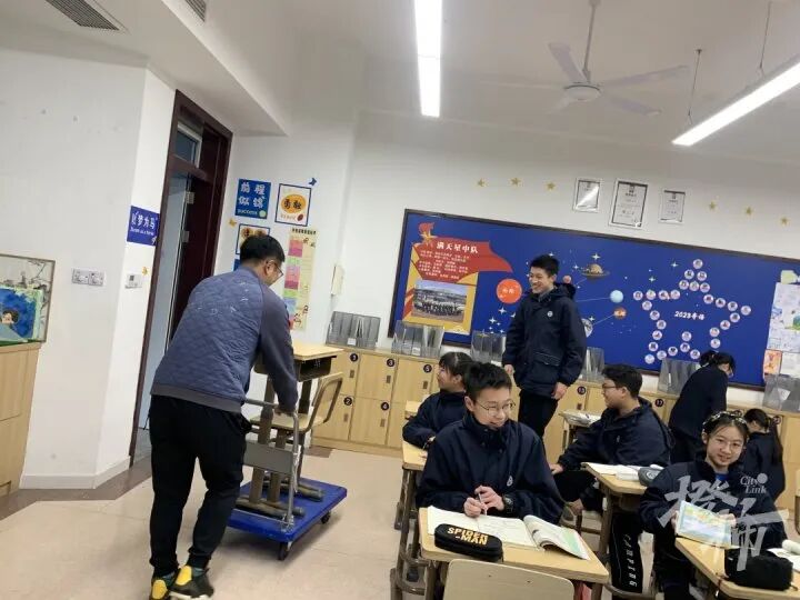 “坐在最後一排的同學,個頭都挺高的,桌面也已經是調高的了,如果和前排同學課桌對比,差距更大。”班主任朱老師說。
