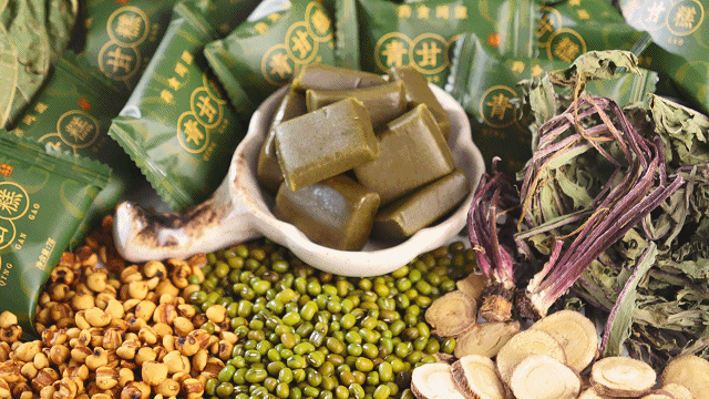 青甘糕中除了蒲公英、桑葉,還有一個綠色食材就是綠豆。