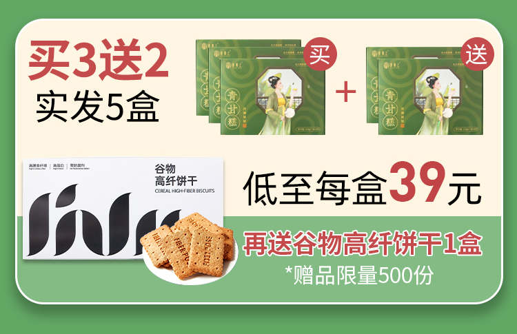 青甘糕一盒裡面有30小塊,可以吃大半個月,優惠價僅需65元/盒,買2送1,買3送2,低至39元一盒!