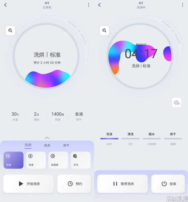 其次在日常洗烘的操作步驟上,H1基本只需要用戶選擇一次洗滌模式,然後按“開始”就行。