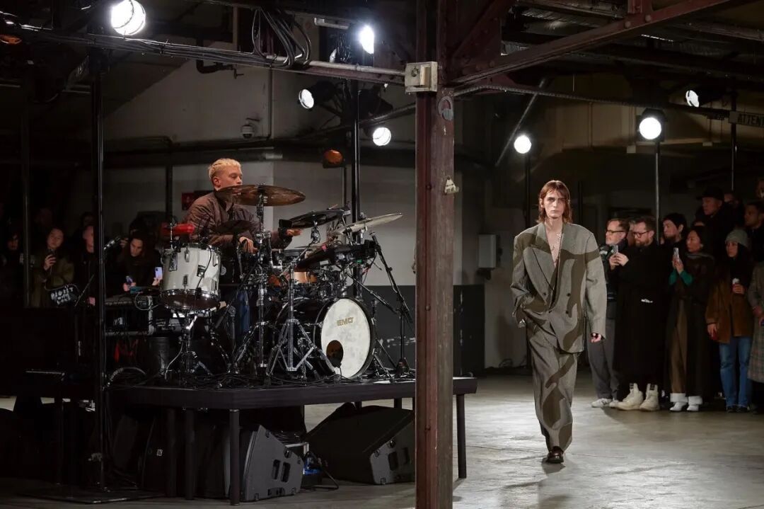 給到我很大驚喜的是Dries Van Noten地下停車場發佈的2023秋冬男裝系列大秀,背景音樂由著名的比利時合奏團 Lander & Adriaan操刀,將屬於90年代的地下電子音樂與爵士樂相糅合,整個秀場彷彿歡快悅動的派對氛圍,短暫地將當代都市人從庸碌的日常中解放出來