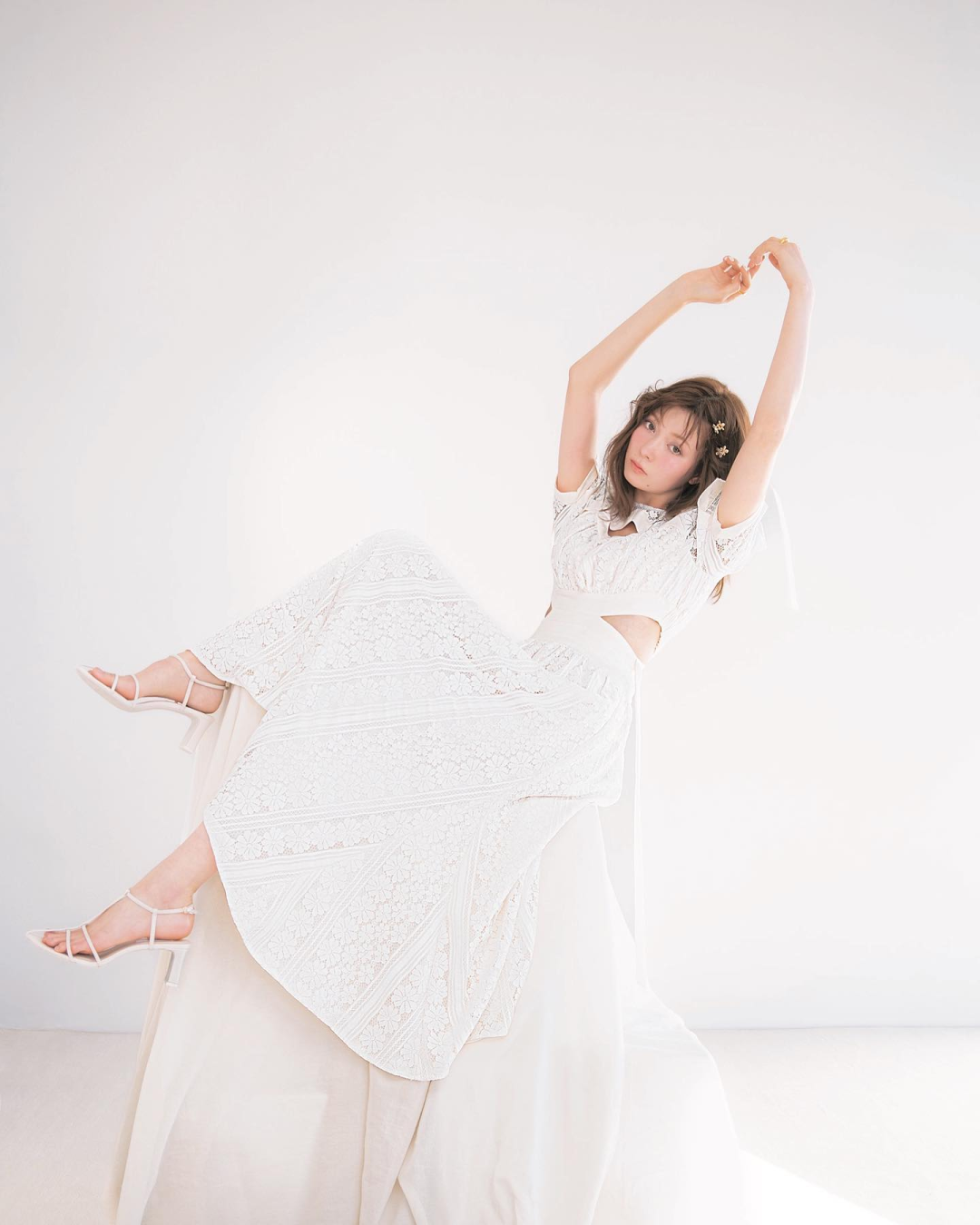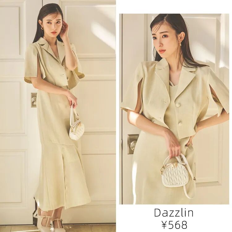 dazzlin這件短袖開叉也太乖巧了吧!配套的裙子也加入了開叉設計互相呼應。