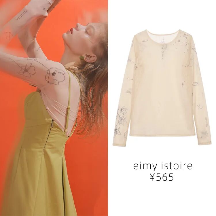 EMODA這件是稍微硬挺一點的薄紗,配上簡潔的印花,很適合走酷酷的路線。