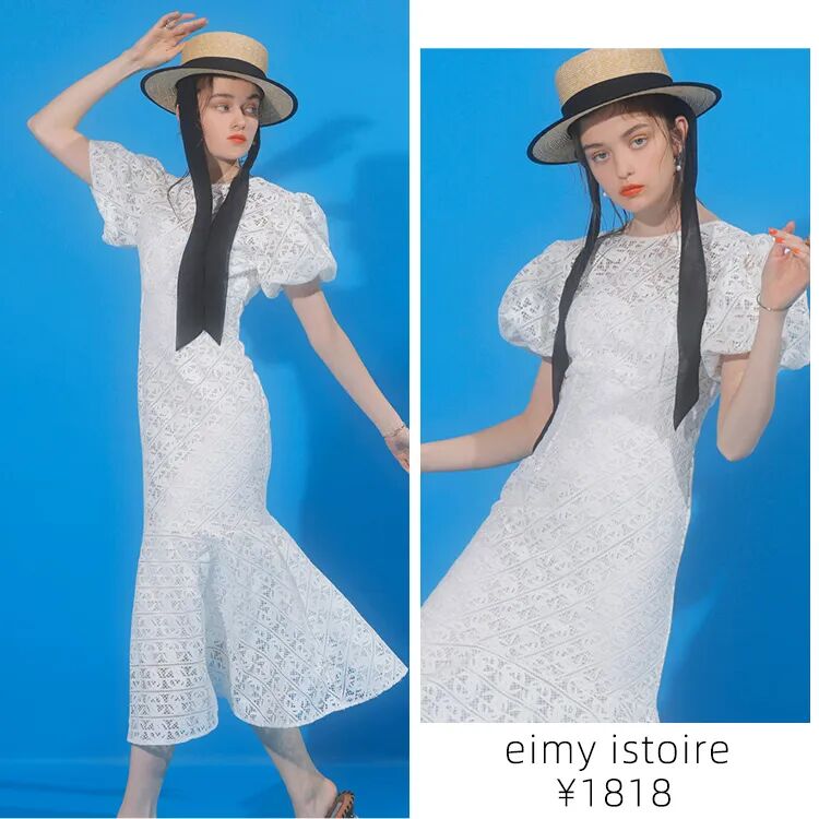 另外一條是走優雅路線的菱形鏤空,配上繁複的羊腿袖,有種大小姐的氣質。