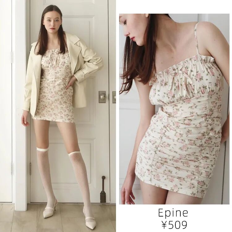 Epine這條粉色碎花裙也太嬌啦!搭配卡其色風衣好清新。