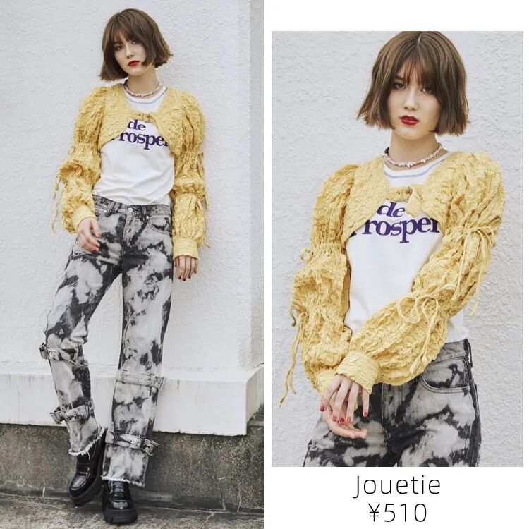 jouetie這件把少女感和街頭感結合了一下,袖子上的蝴蝶結綁帶好戳我!